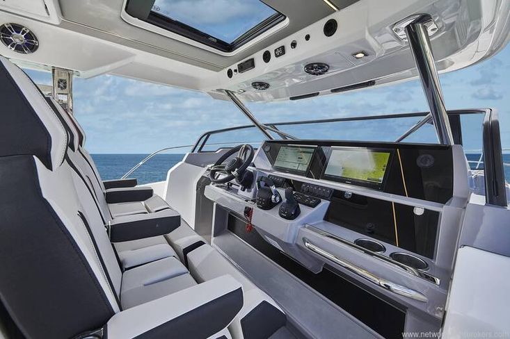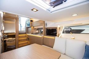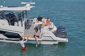The Jeanneau Cap Camarat 12.5 WA, available for pre-order located in Chichester, UK, is a brand-new model for 2026 and the largest in the Cap Camarat lineup. Designed by Michael Peters and the Sarrazin design office, this luxurious outboard day cruiser boasts a V-shaped hull and is powered with up to 900 HP. With generous dimensions of 12.27m in length and a beam of 3.57m, it offers innovative layouts and luxurious interiors, including a full-beam aft cabin with a king-size berth and separate shower. Key features include a forward saloon with facing seating, a versatile cockpit terrace, and an exterior multi-configuration galley. The listed base price is for the brand new high windscreen T-top version with triple Yamaha 300HP outboards and joystick. She also comes with a comprehensive specification such as Zipwake trim tabs, Garmin electronics, ski mast, cockpit table, removable swim ladder on terrace, bow thruster, cockpit galley, removable carpets, windscreen wipers and washers, electric sliding roof and much more.